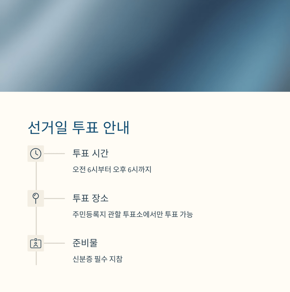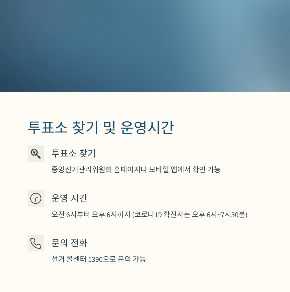 | 일반 투표소 | 06:00 ~ 18:00 | 12시간 연속 운영 | 휠체어 접근로 |