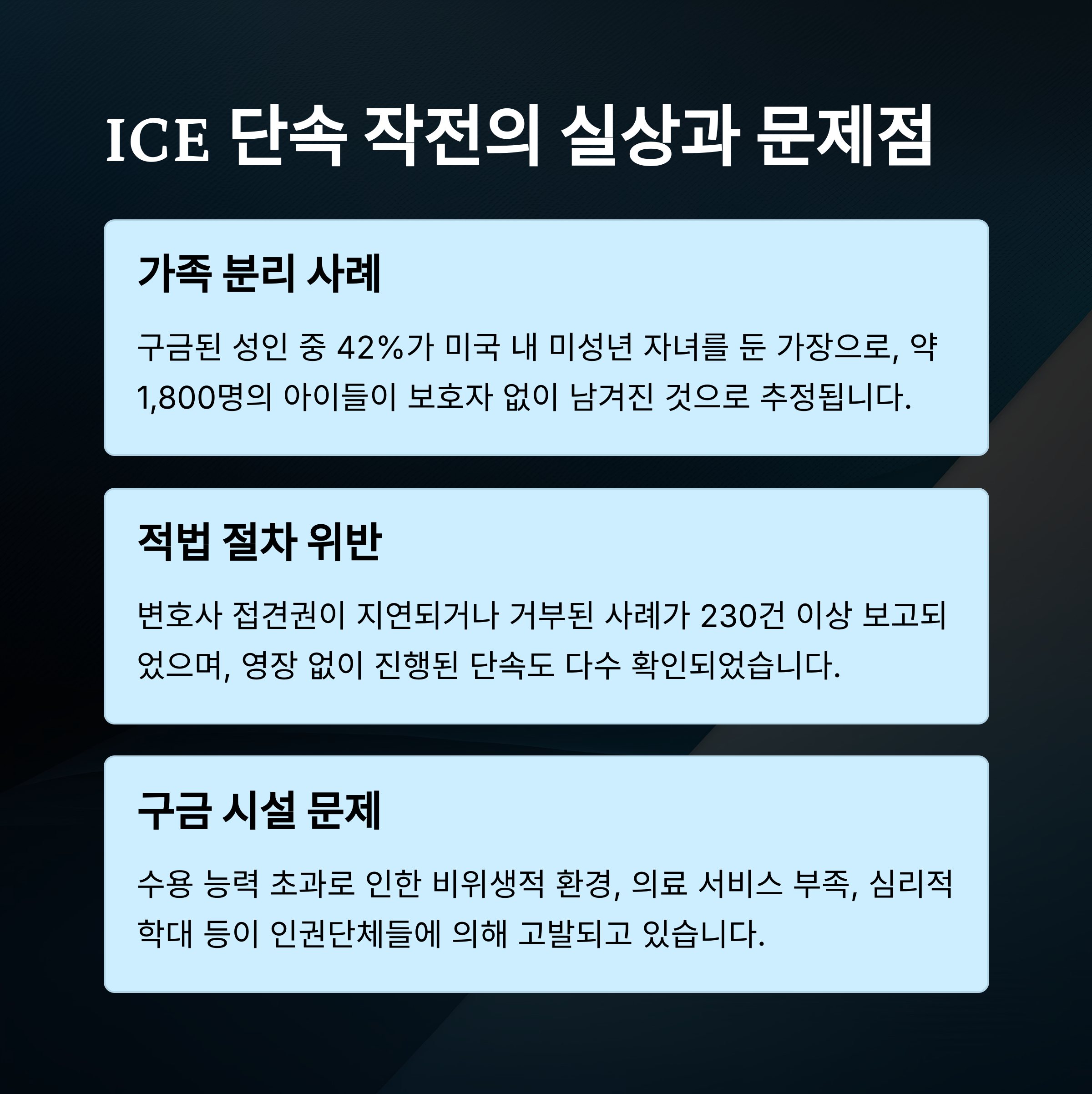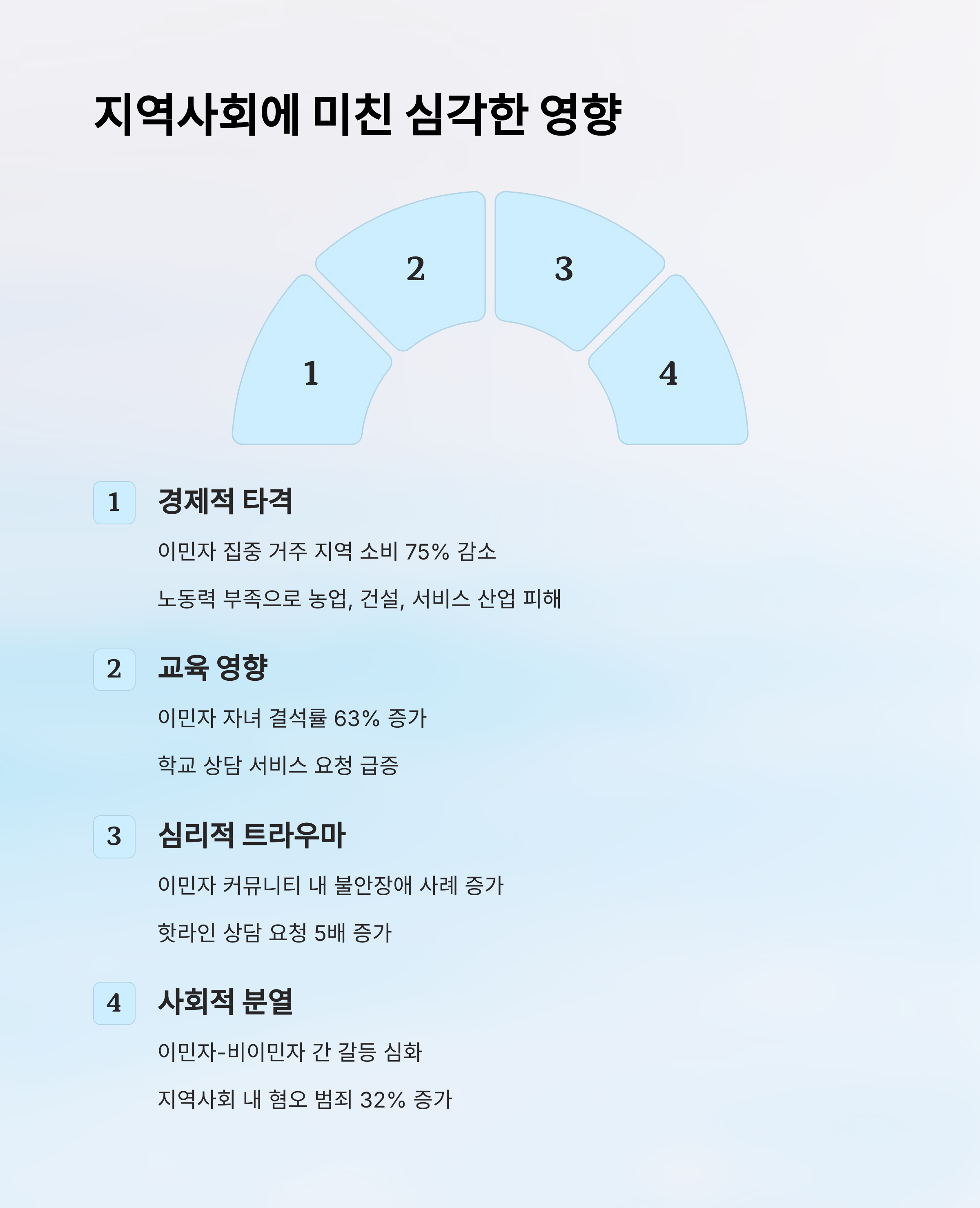 특히 이번 단속에서 주목할 점은 한인이나 한국 국적자 체포 사례가 없었다는 것입니다. 이는 LA 코리아타운 지역이 단속 대상에서 제외되었거나, 한인 커뮤니티의 법적 지위가 상대적으로 안정적임을 시사합니다.