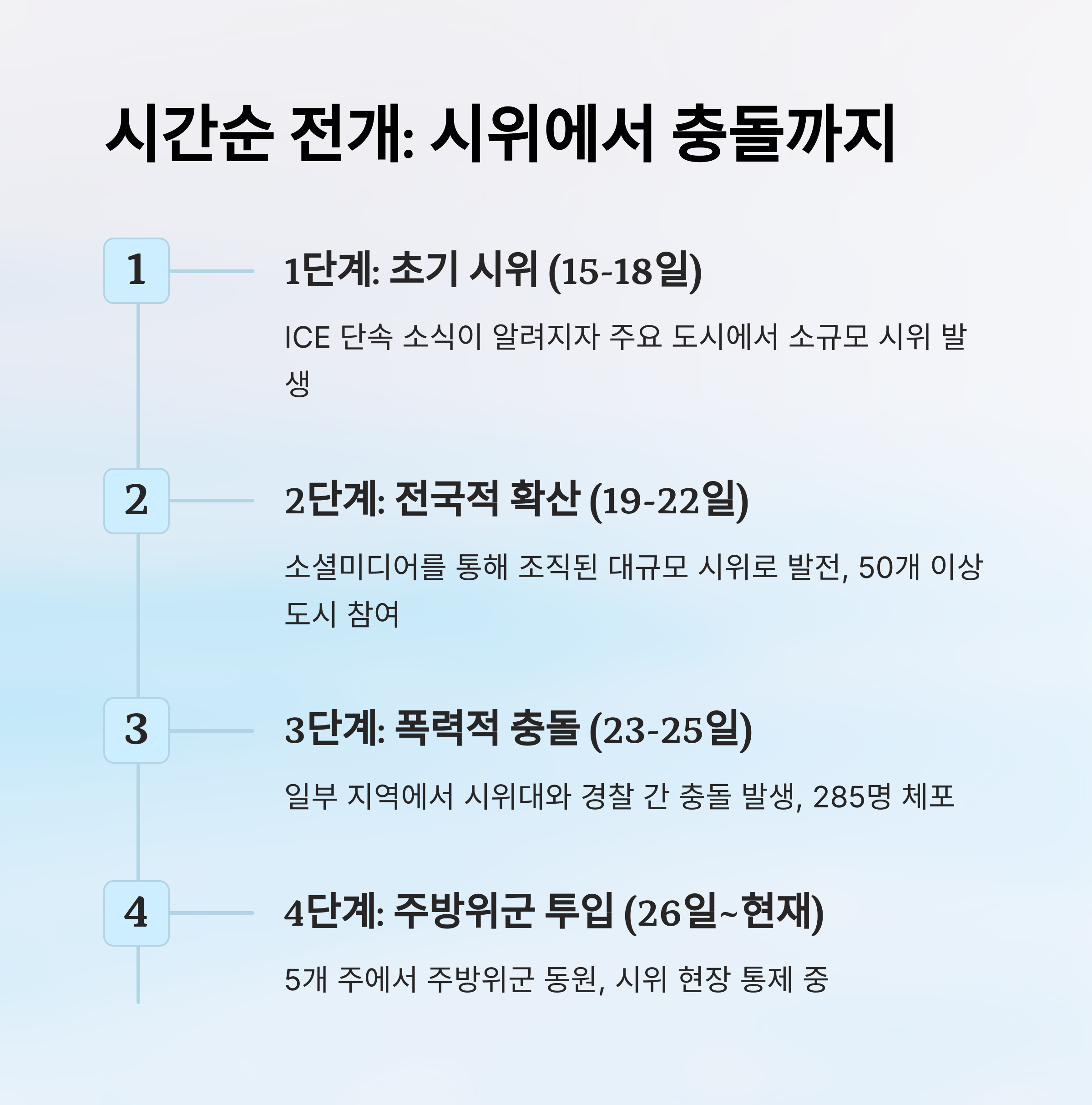 | 6월 6일 | ICE 단속 작전 시작 | LA 전역에서 대규모 불법 이민자 체포 작전 개시 |