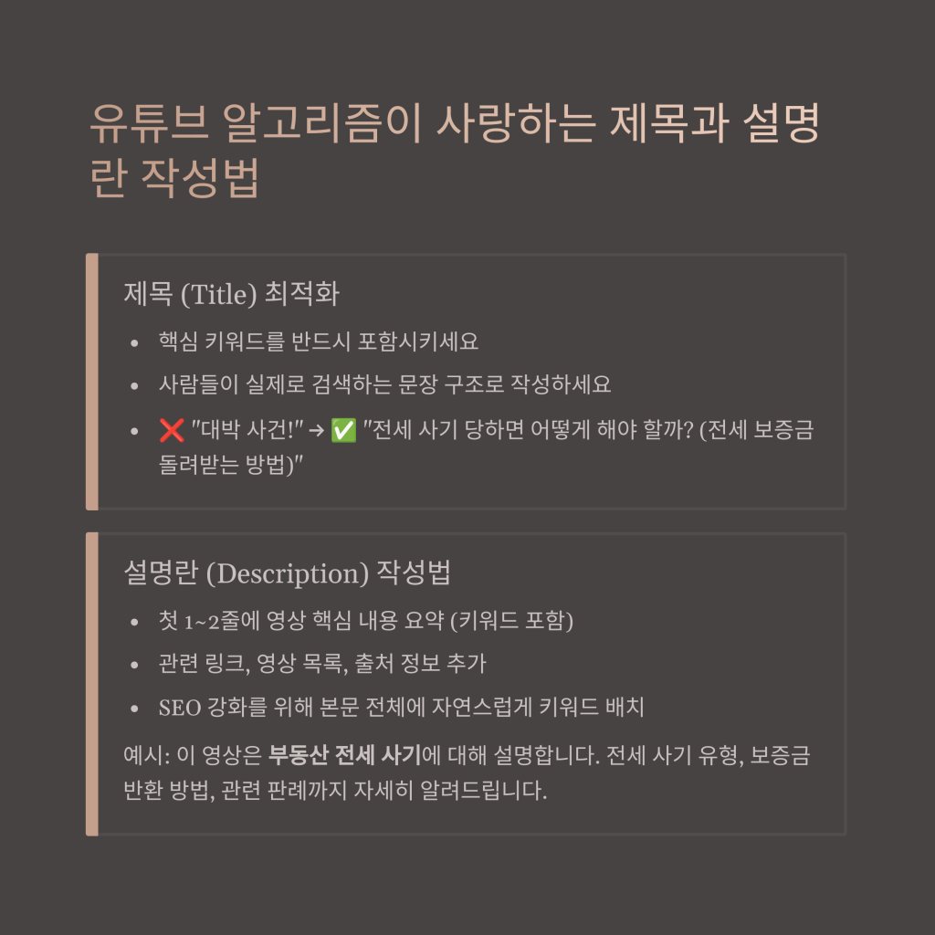 👉 최초 업로드 시점에 ‘완성된 썸네일과 제목’ 필수!
