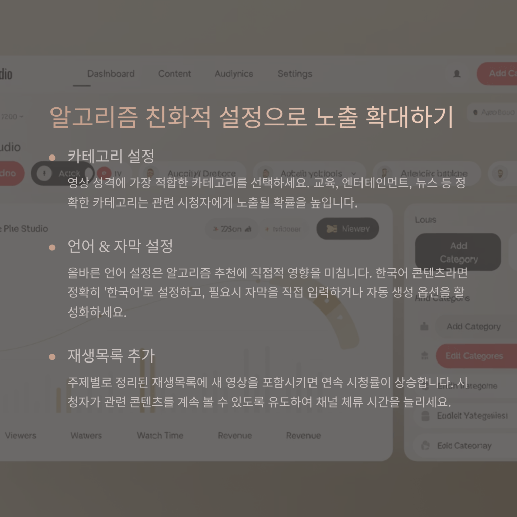 - 카테고리 지정은 유튜브의 콘텐츠 분류 및 추천 알고리즘에 도움을 줍니다