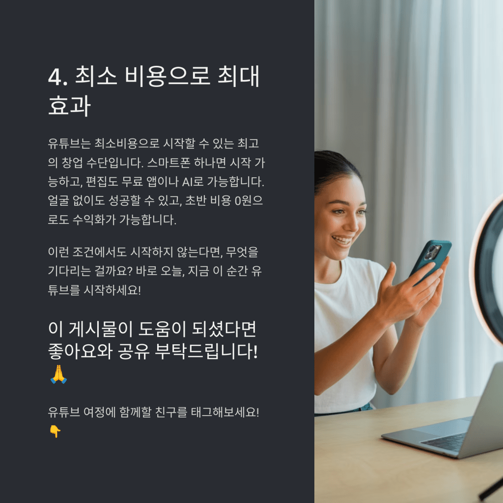 유튜브는 최소비용으로 시작할 수 있는 최고의 창업 수단입니다.