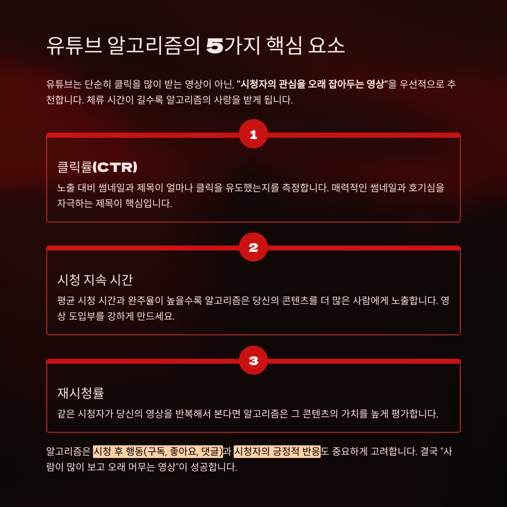 유튜브 알고리즘은 기본적으로 “시청자의 관심을 오래 잡아두는 영상”을 선호합니다.
