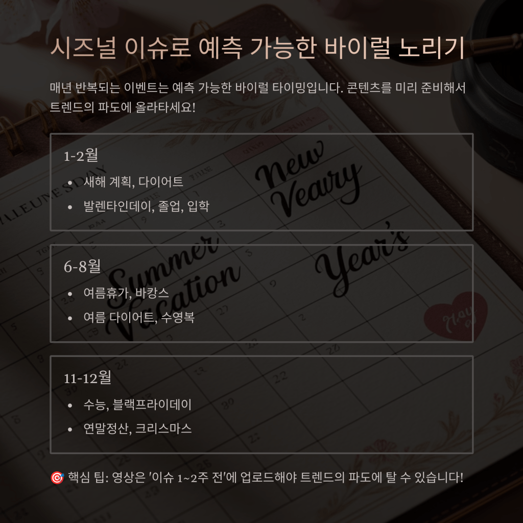 🎯 영상은 ‘이슈 1~2주 전’에 업로드해야 트렌드 파도에 탈 수 있습니다.