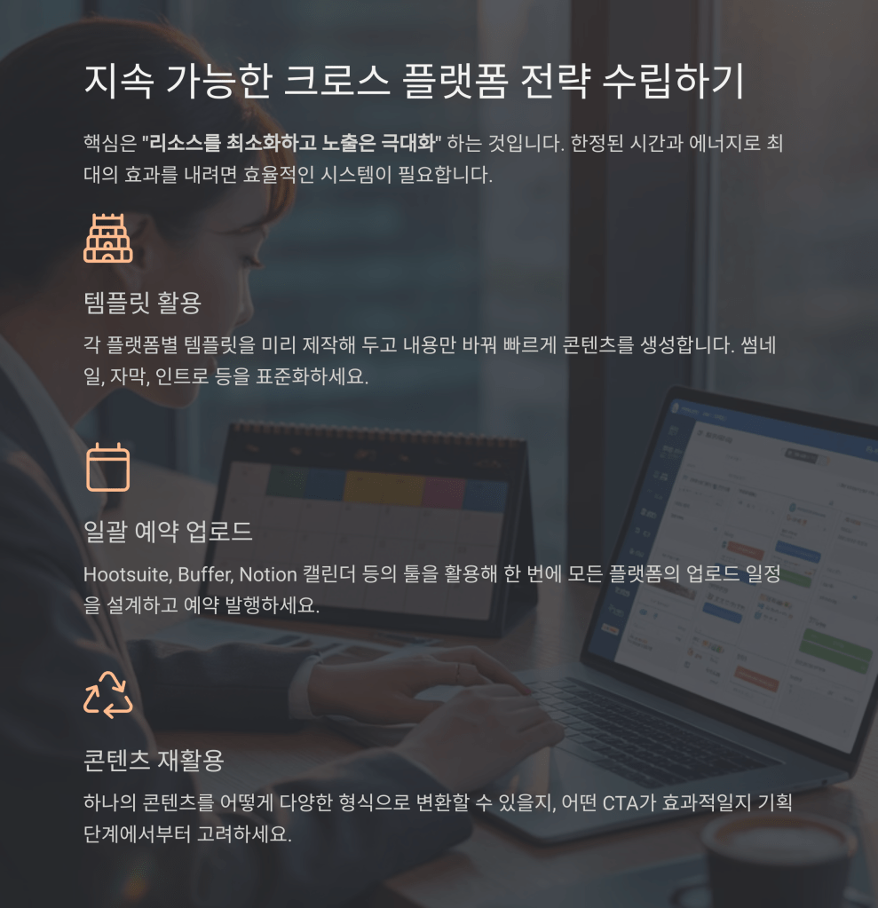 - 템플릿, 자동화 툴 활용 (예: Hootsuite, Buffer, Notion 캘린더 등)