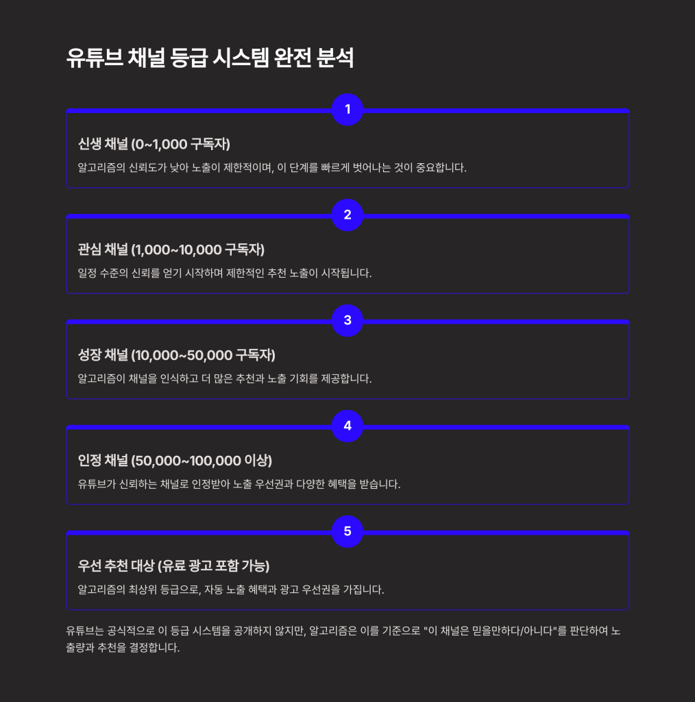 - 유튜브는 채널을 ‘등급별’로 판단하고, 신뢰 채널만 밀어준다