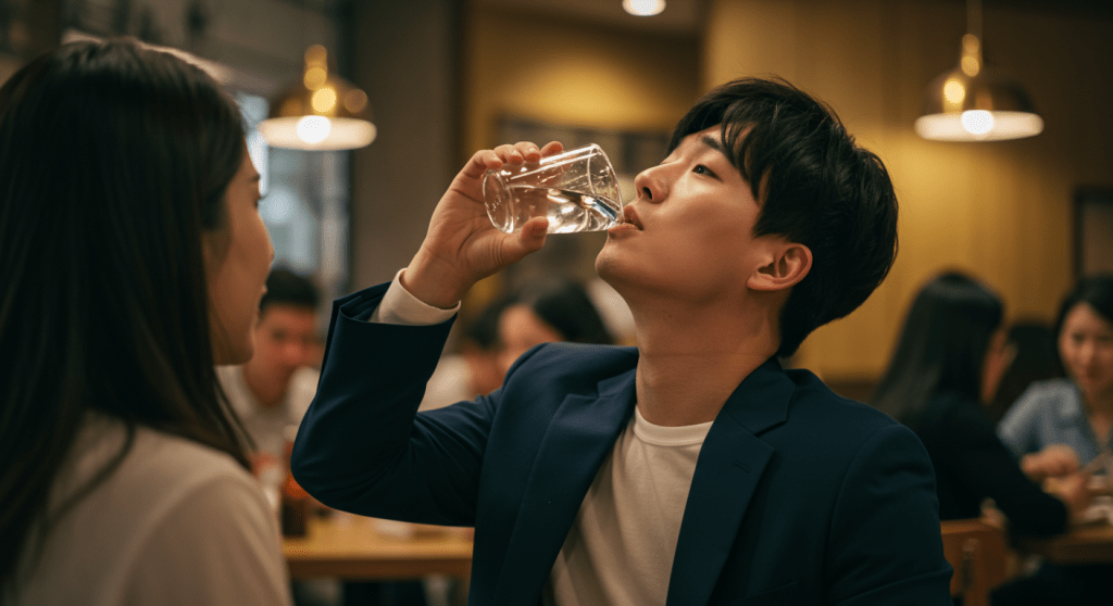 ๋ ์คํ ๋์์ ์ ๋ ์ ๋จน์ผ๋ฉฐ ์ฑํธ๊ฐ ๋ฌผ์๋ค.
